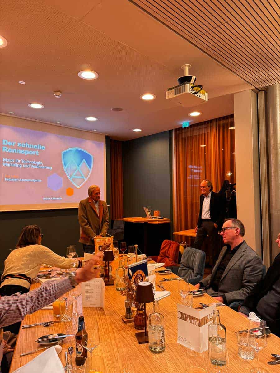 Heute ist er als internationaler Motorsportberater tätig. Er schloss das Referat mit einer sehr interessanten Beurteilung über die jüngsten Fehler und Probleme der europäischen Automobilindustrie. Ein äusserst spannendes Thema, das ein weiteres Referat von Max Welti wert wäre.